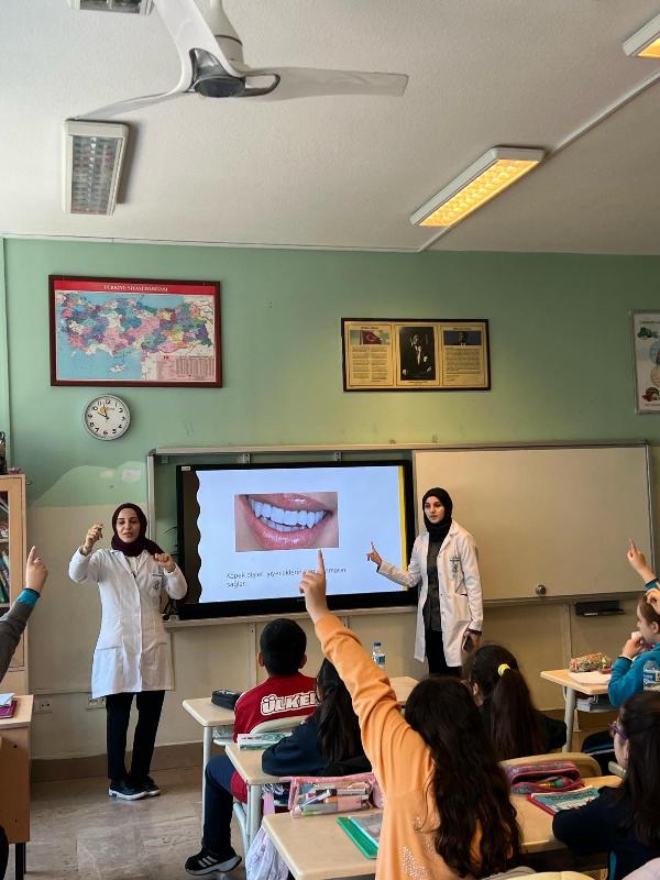 Üsküdar Üniversitesi Diş Hekimliği Fakültesi öğrencileri, Dr. Öğr. Üyesi Buse Yılmaz Şen’in proje yürütücülüğünde, Hasan Tahsin İlköğretim Okulu’na anlamlı bir ziyaret gerçekleştirdi. Toplum ağız ve diş sağlığını geliştirmeyi amaçlayan etkinlik kapsamında öğrenciler, ilkokul düzeyindeki çocuklara yönelik ağız ve diş sağlığı konulu bilgilendirici bir sunum gerçekleştirdiler. Ardından, ağız ve diş sağlığının önemini eğlenceli bir dille anlatan tiyatro gösterisiyle çocuklara keyifli anlar yaşattılar.